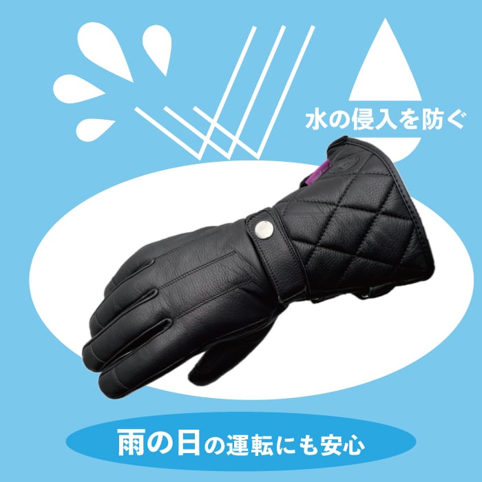 手首部分に施されたガントレットデザインにより、風や冷気をシャットアウトし、寒い季節でも暖かさをキープします。